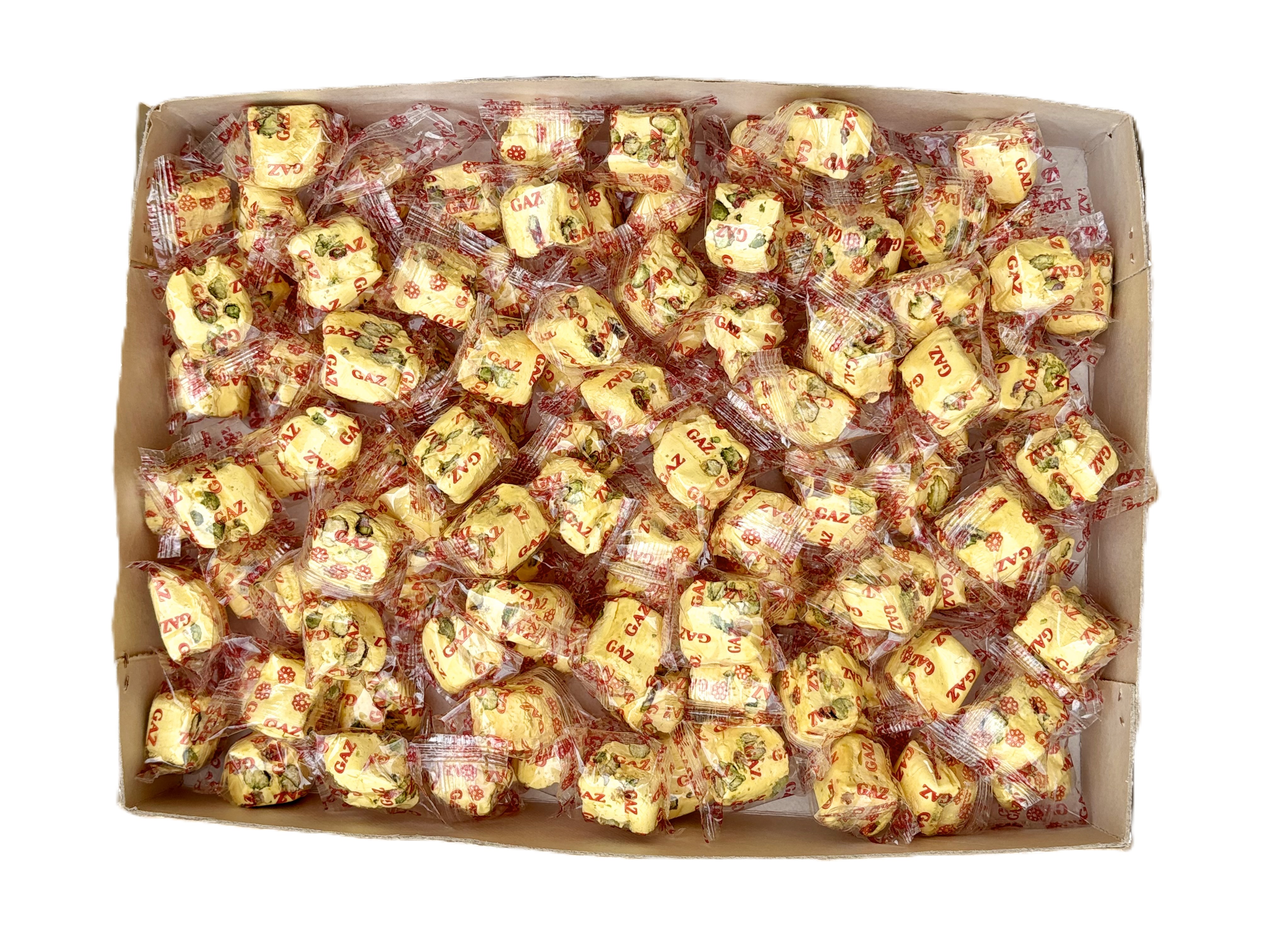 گز لقمهای ریز زعفرانی با ۲۸٪ مغز پسته، طعمی ناب و زعفرانی دارد که آن را از سایر گزها متمایز میکند. این گز بدون بستهبندی تکی بهصورت فلهای عرضه میشود.طعم زعفران همراه با مغز پسته، آن را به گزینهای عالی برای مصرف عمده تبدیل کرده است