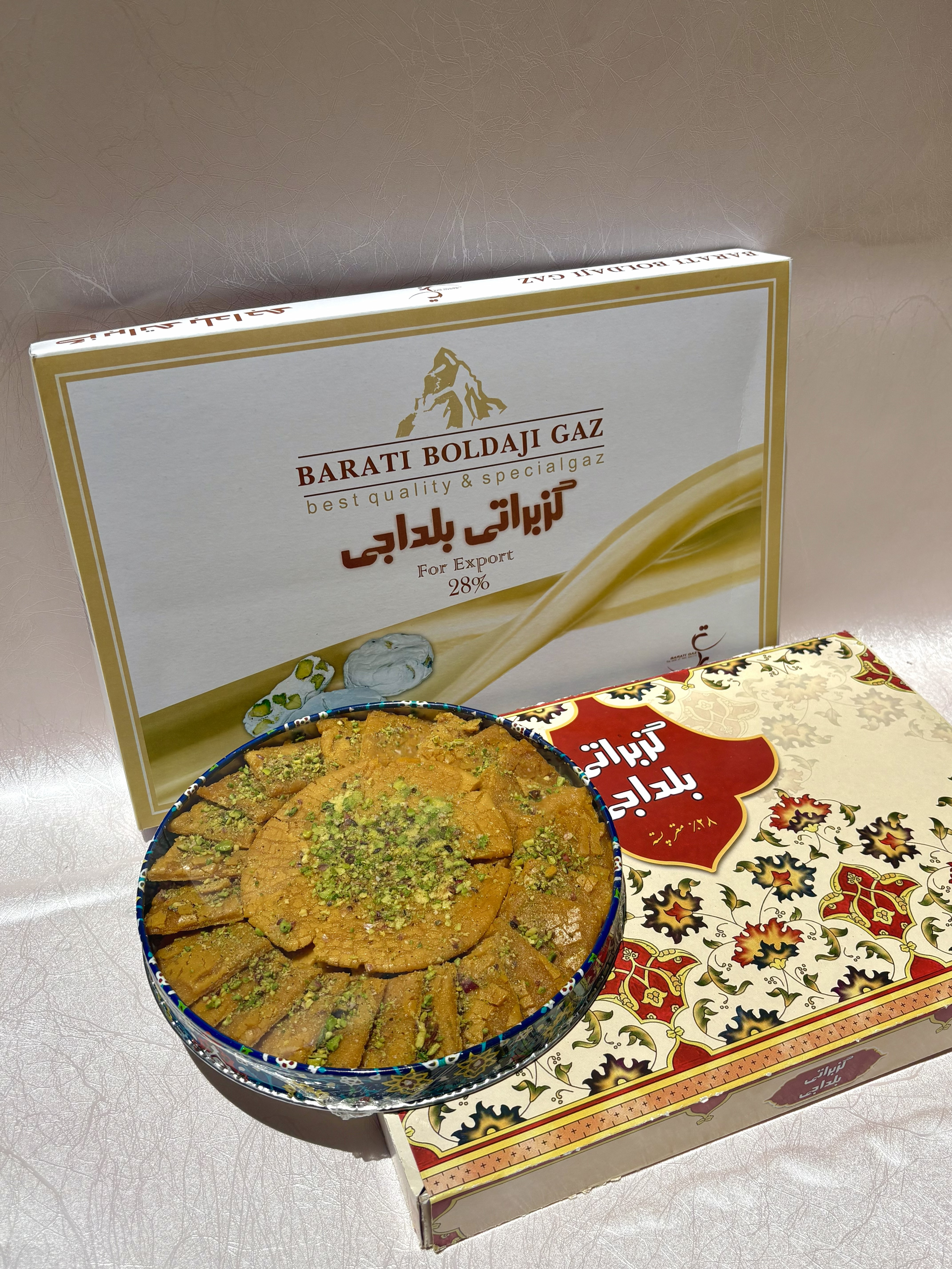 یک بسته گز ۲۸ درصد لقمه ای پسته، یک بسته گز ۲۸ درصد آردی، سوهان کره ای زعفرانی ۵۰۰ گرمی